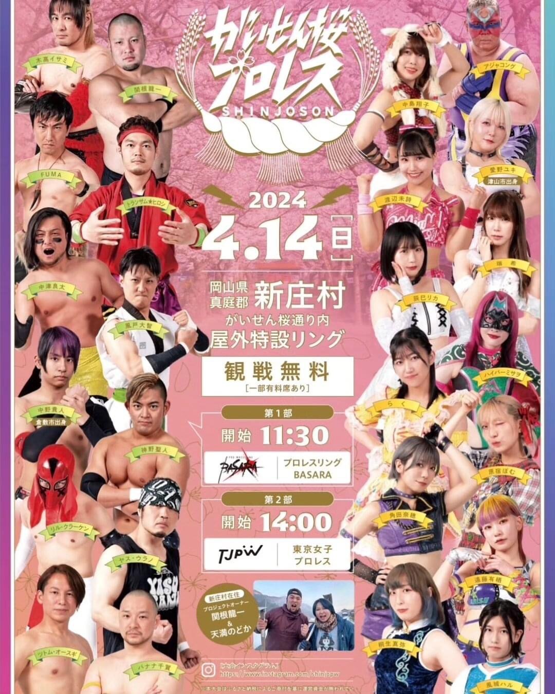 4月14日(日)、お隣の新庄村で開催される「がいせん桜プロレス」。