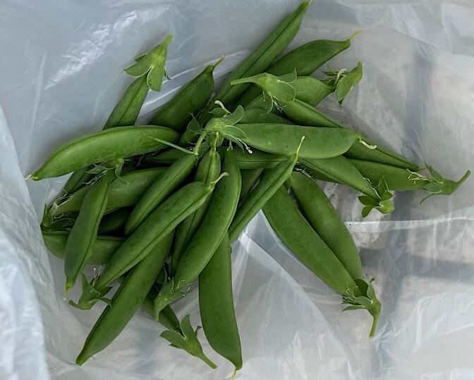 お庭の小さな菜園にて、スナップエンドウ収穫!!*\(^o^)/*