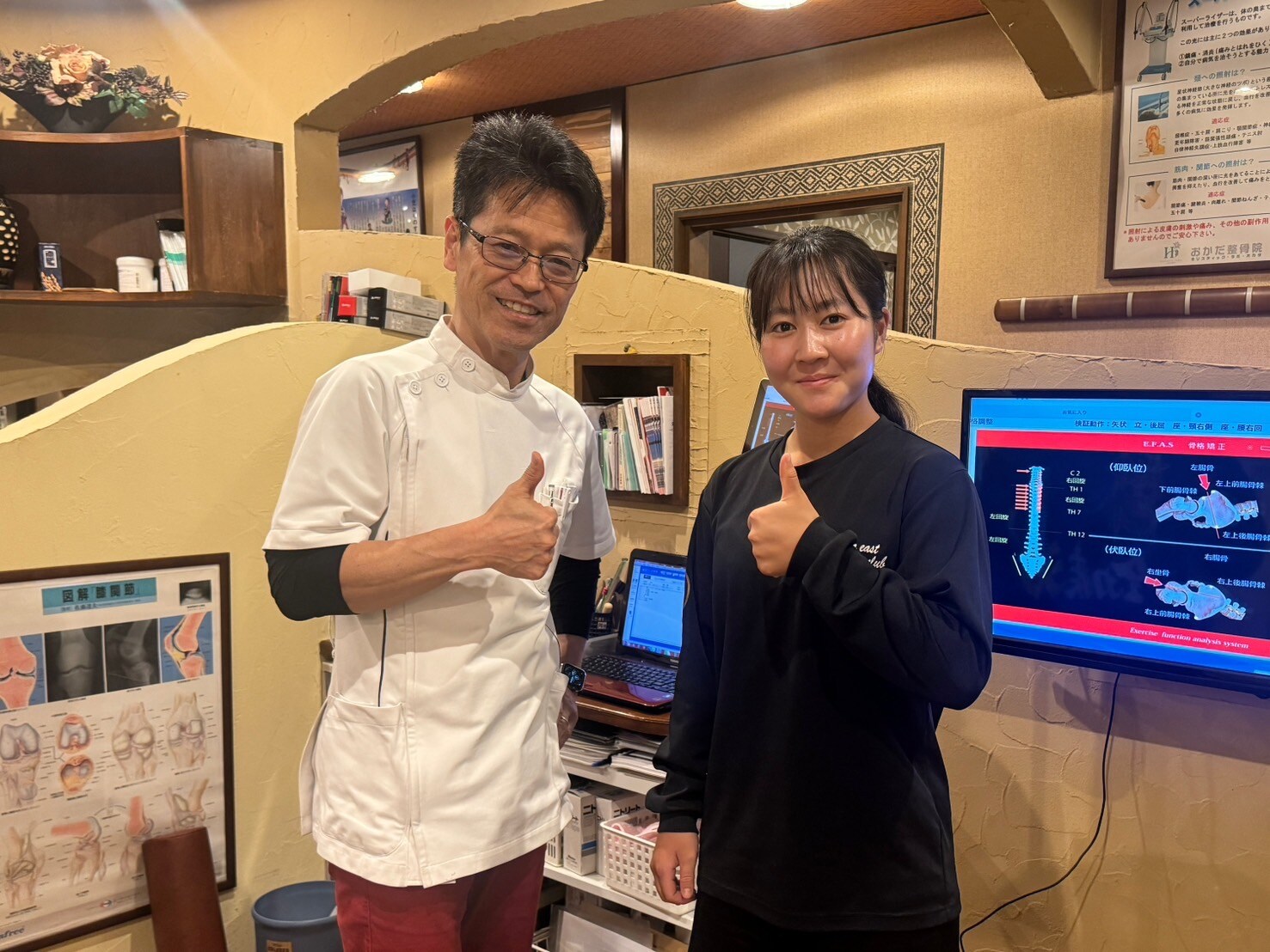 おかだ整骨院に宇和島東高ボート部の宝本和花さん(3年)がメンンテナンスで通っています。