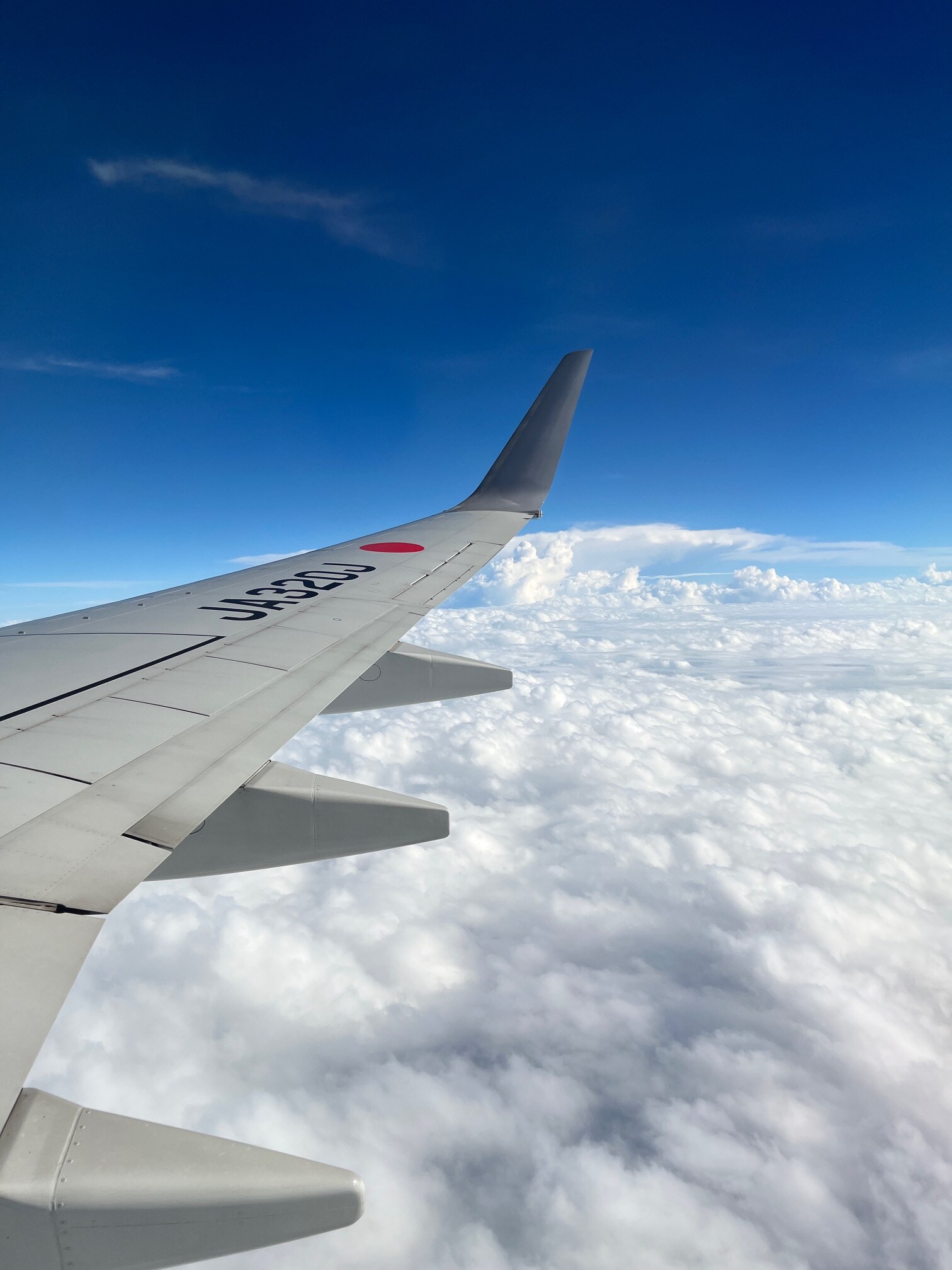 帰りの飛行機、秋雨前線による雲が延々と広がっていました。下降時なかなか抜けないほど分厚い雲でした。