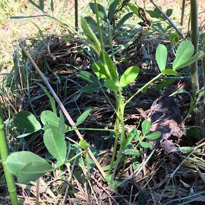トマトの下の落花生、ひょろひょろですーー。