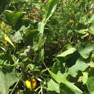分かりにくいけど、カボチャ、トウモロコシ、マリーゴールド。