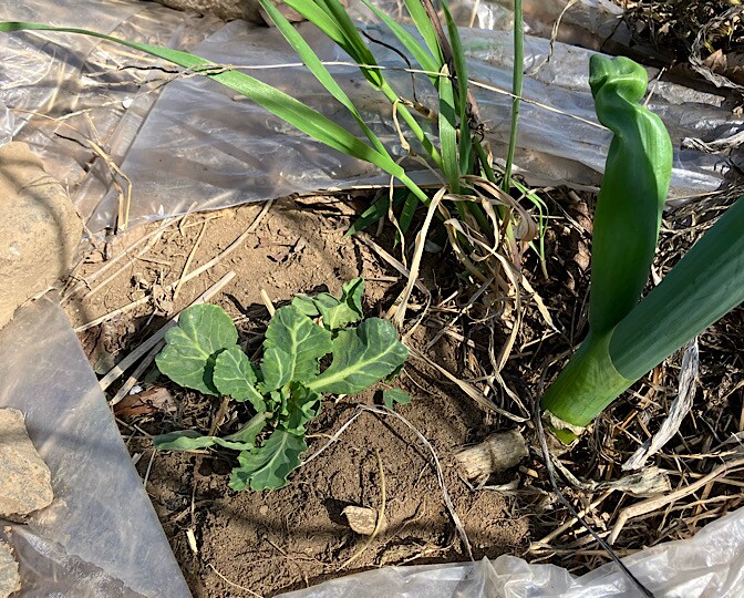 同じ畝にカボチャ用のネギ鞍つきを作って、ハクサイ周りも整えました。