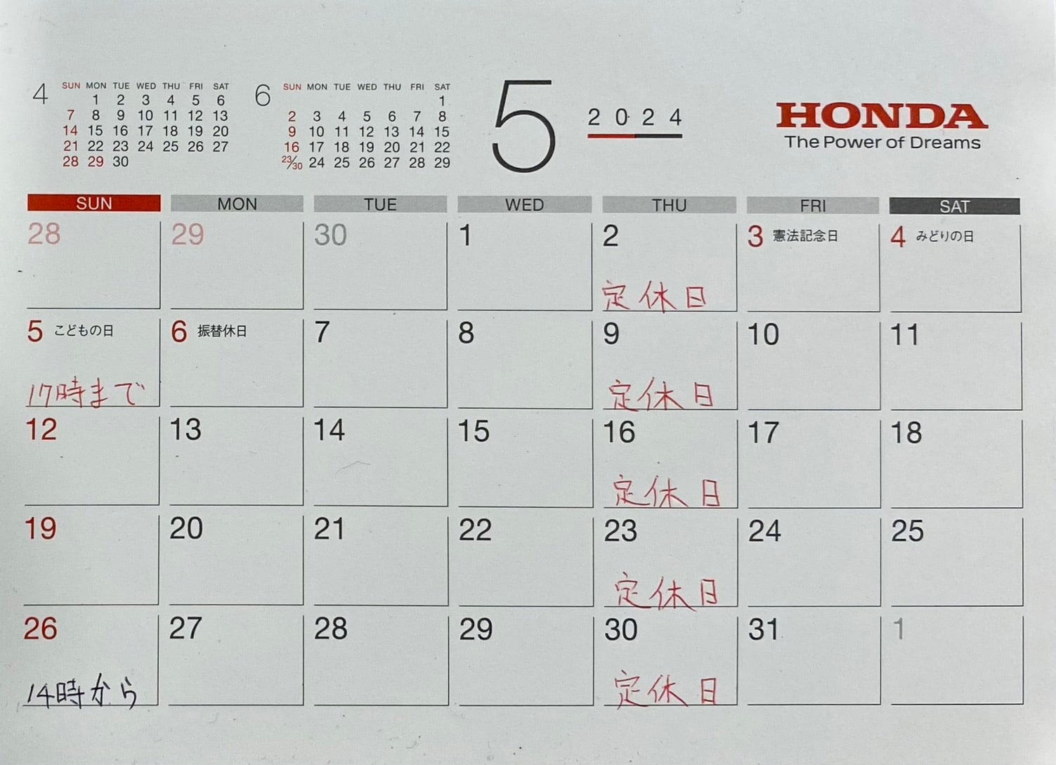 5月の営業日