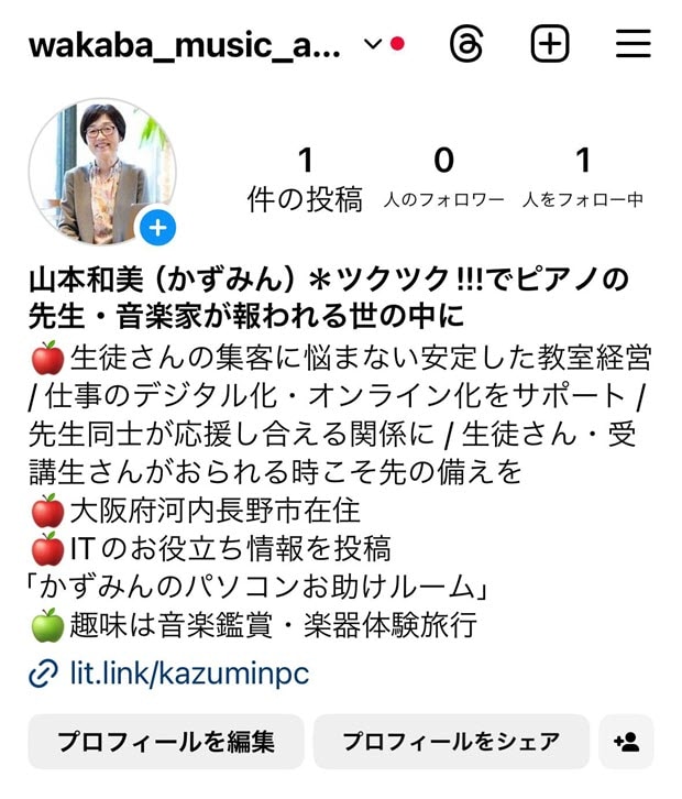 プロフィール欄を書いたところ。
