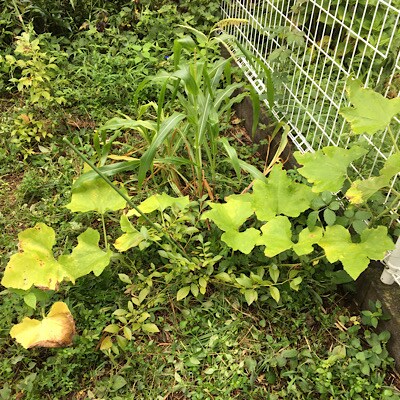 よく見たら、カボチャの葉っぱが黄色くなって来てますやん!!