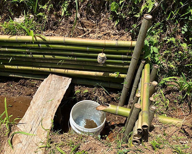 前は、水が滲み出てるところに洗面器だかバケツだったかが埋めてあって、水を溜めてたんですが…。