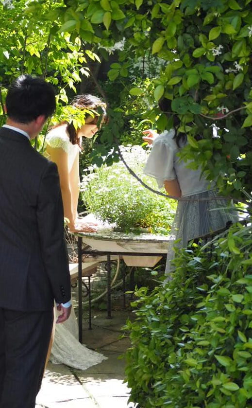 テーブルガーデンを囲んで、お写真を撮られていたり、