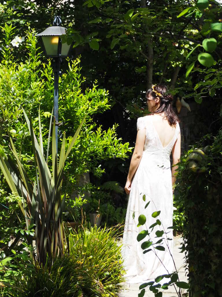 緑いっぱいのガーデンを背景に