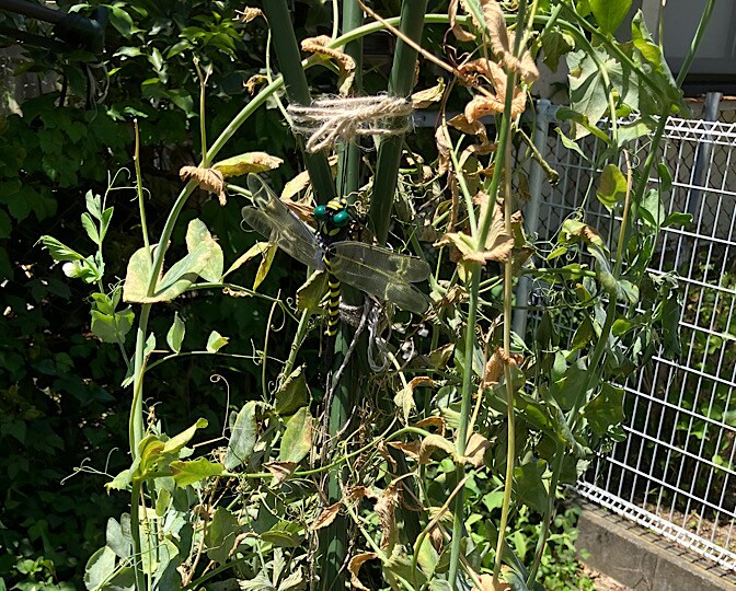 ちょこっとお庭の菜園へ…オニヤンマと共に来たる!!(*≧∀≦*)