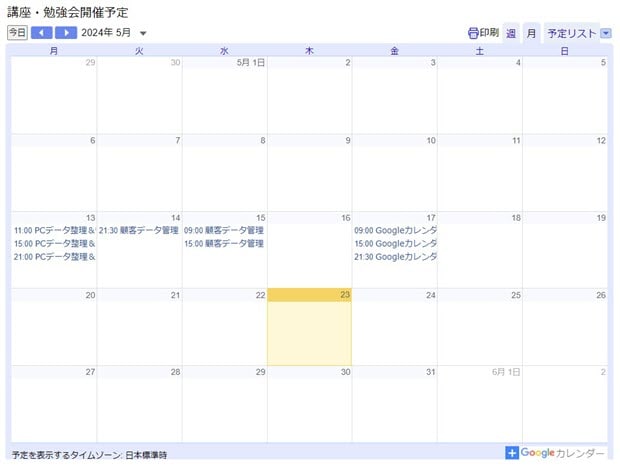 6月の講座開講予定 Googleカレンダーって便利です