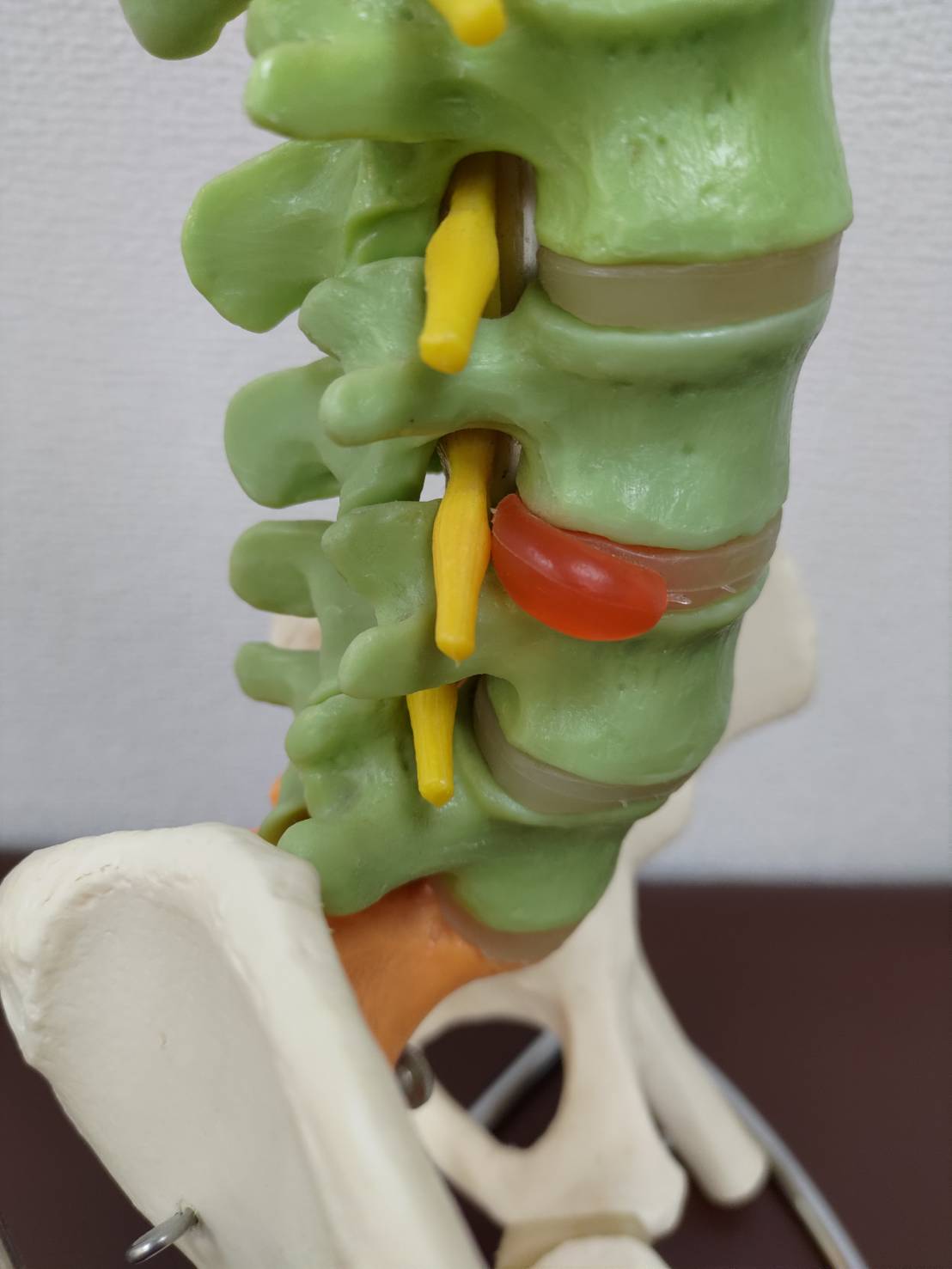 それは体が歪むことで姿勢が悪くなり、骨と骨の間が狭くなって髄核が逃げ場を失い外に飛び出てしまっているのです。