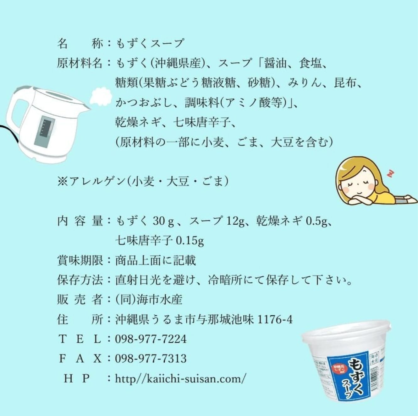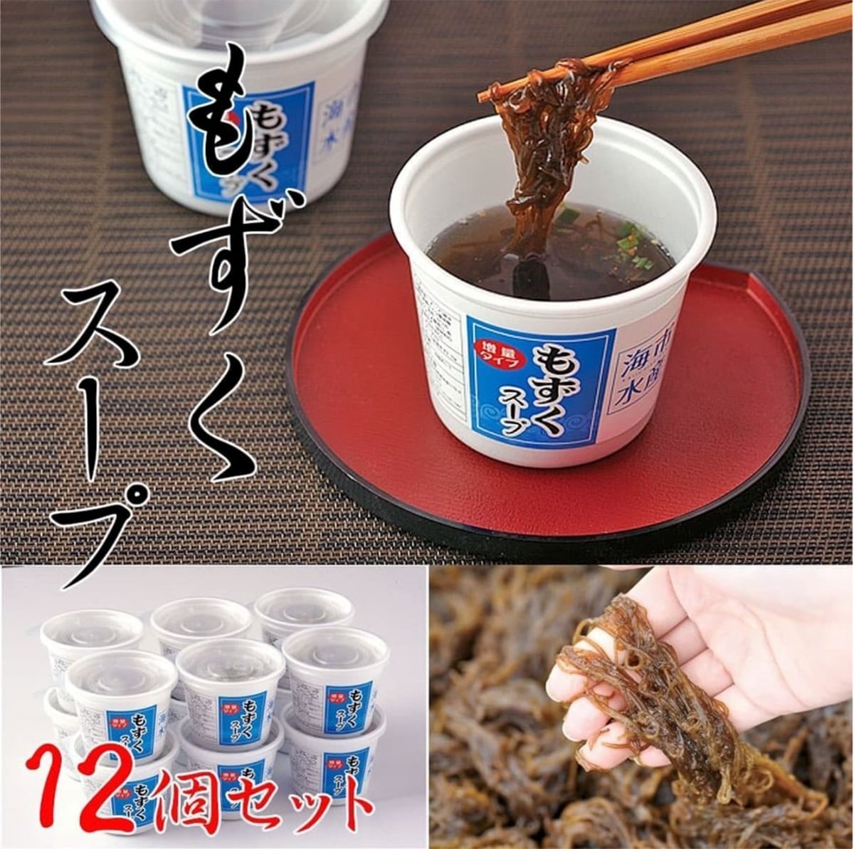 お年寄りからお子様まで、ローカロリーでミネラル豊富なもずくを熱湯を注ぐだけで簡単においしく食べられるカップスープです。