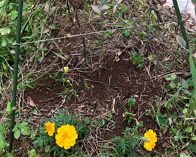 カボチャのそばには、マリーゴールドを…。