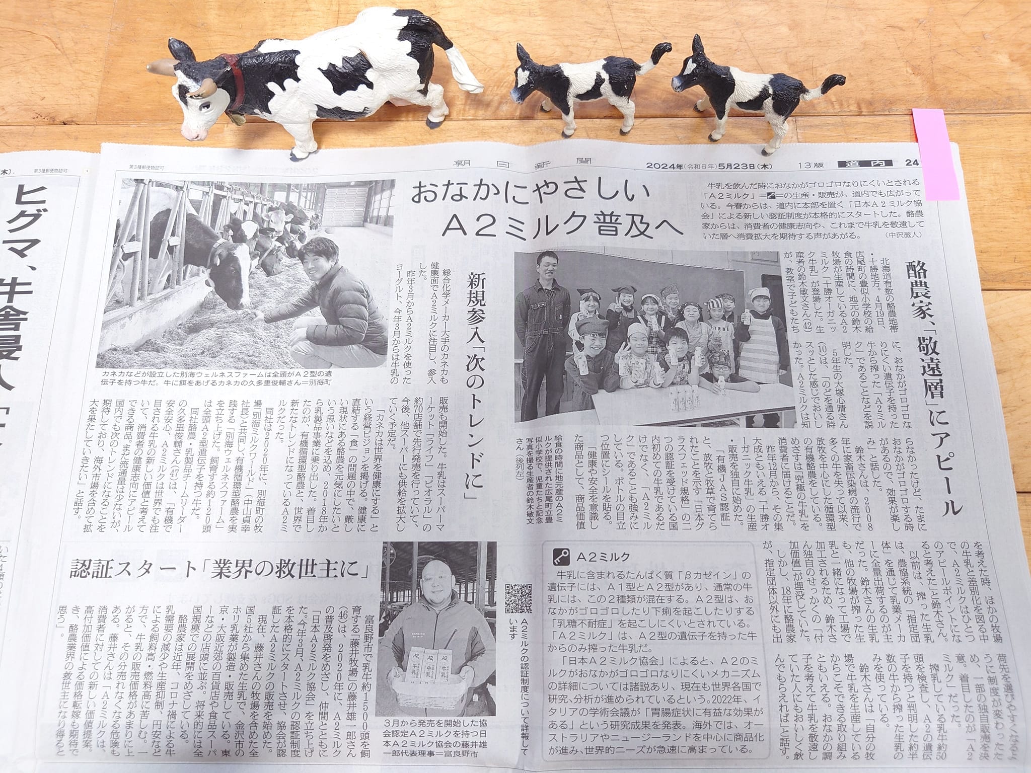 朝日新聞に学校給食にオーガニック牛乳提供とA2ミルクについて取り上げていただきました。