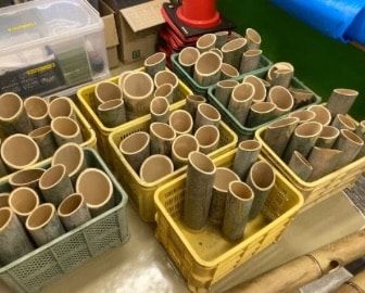 今日は夏祭り実行委員のメンバーで協力し、津田っこ夏祭りで飾る、竹燈籠作りの準備を行いました。