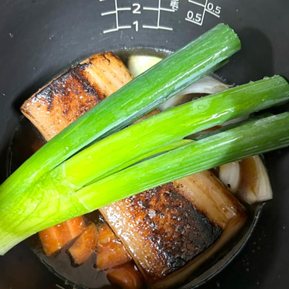 島村兄弟黒酢玉ねぎポン酢 全体に馴染むくらい 豚バラ肉 300g 水 50cc にんにく 適量 ネギ、茹で卵、チンゲン菜、水菜 お好みの量で ■作り方 1. 豚バラ肉を袋に入れ、ポン酢で1日馴染ませる 2. 茹で卵を作り、チンゲン菜を塩ゆで、またはゆでた後に島村兄弟の玉ねぎスープを軽く馴染ませる 3. 豚バラ肉の表面を焼く 4. 炊飯器に豚バラ肉、漬け込んだポン酢、にんにく、水、ネギを入れる 5. 炊飯ボタンを押す 6. 出来上がった豚バラを出し、茹で卵を10分ほど入れ保温にしておく 7. 盛り付けて完成! |