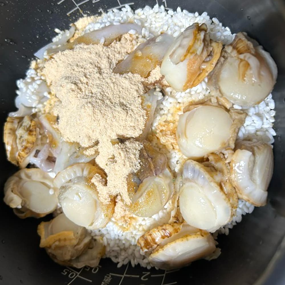 島村兄弟玉ねぎスープ 小さじ6杯 洗い米 3合 ベビーホタテ 50g イカ お好みの量で! 水 600cc バター 少量 ■作り方 1.洗い米に具材をいれる ※シーフードミックスでも可 2.玉ねぎスープを入れる 3.水を入れる 4.よく混ぜる 5.炊飯スイッチを入れる 6.炊き上がりに、お好みで少量のバターを入れる 7.お好みでパセリなどをふりかける |