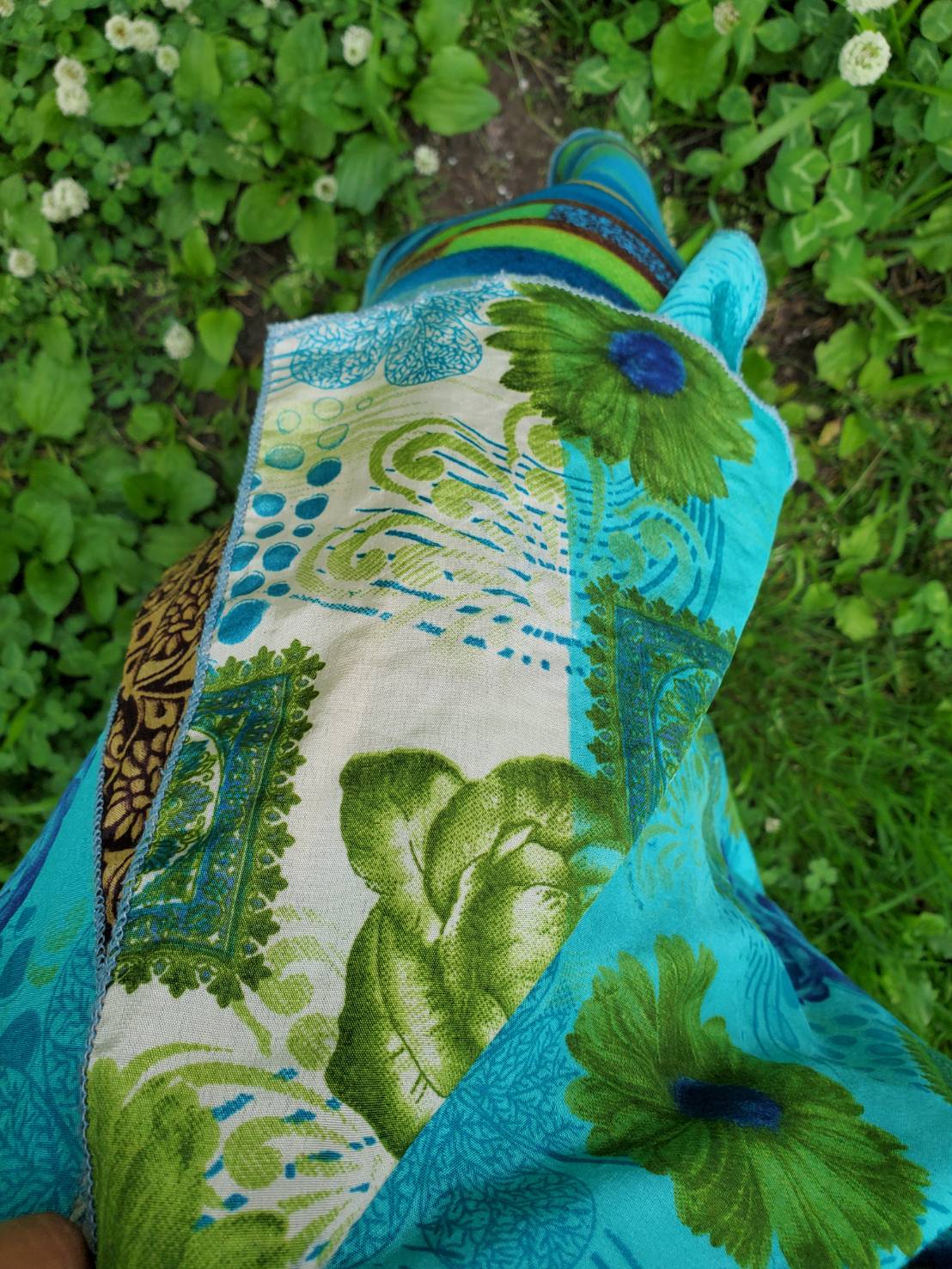 昨日のサリー風スカートはこちら。風にたなびいてひらひらして様々な柄が見えるのがお気に入り♪