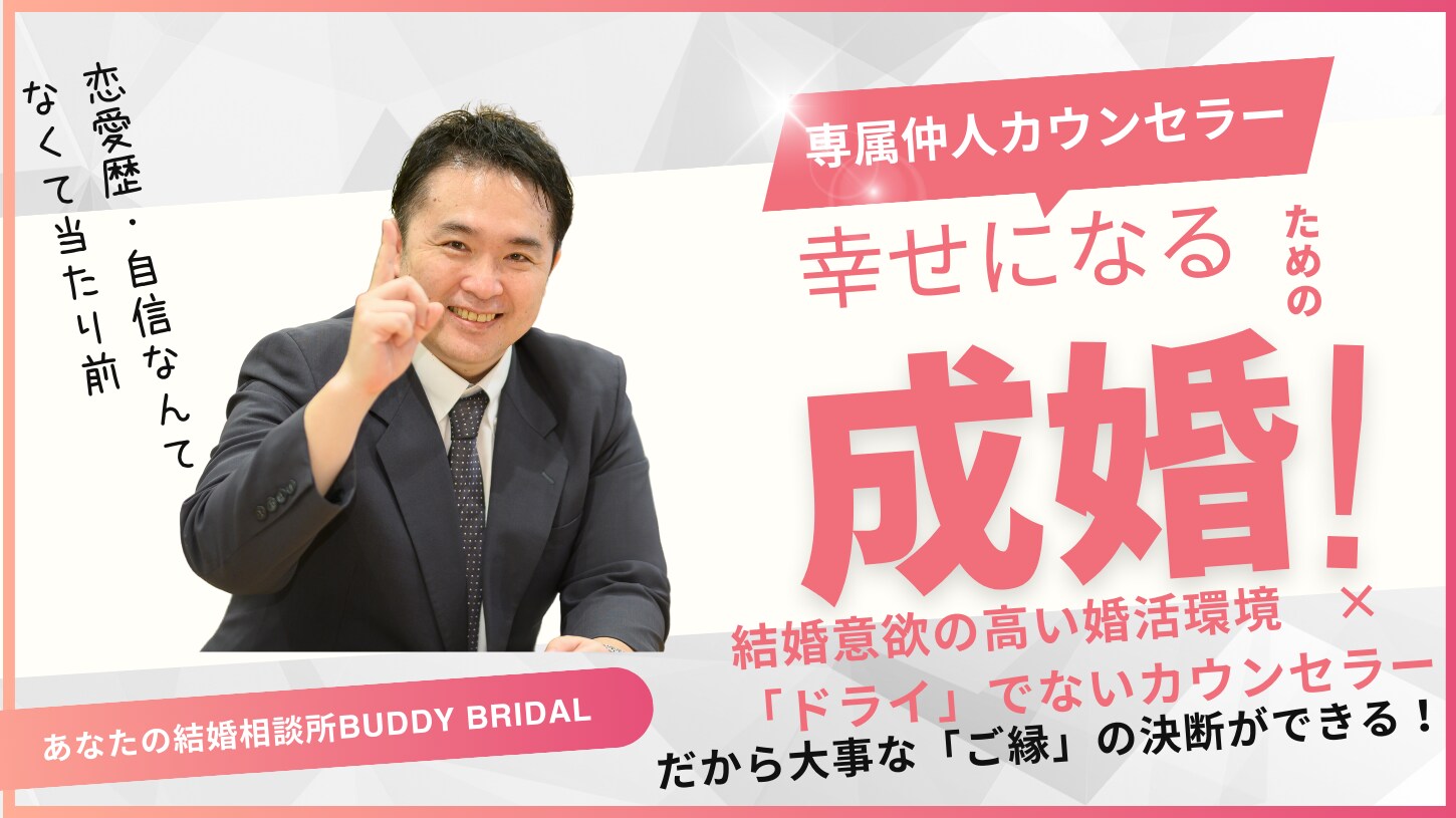 あなたの婚活を成功させるために、まずはBUDDY BRIDALにご相談ください。専門のカウンセラーがあなたの婚活を全力でサポートし、幸せな未来への一歩をお手伝いします。