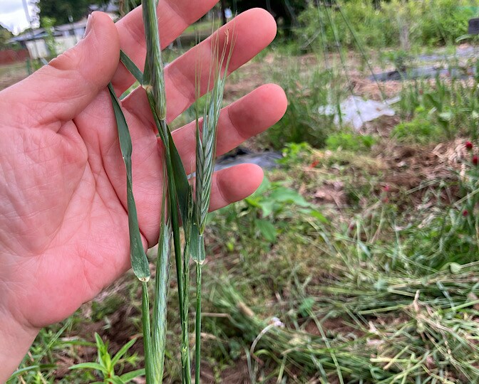 そして、今回も、緑肥の麦(オーツ麦と細麦か???)の穂先を刈りました。