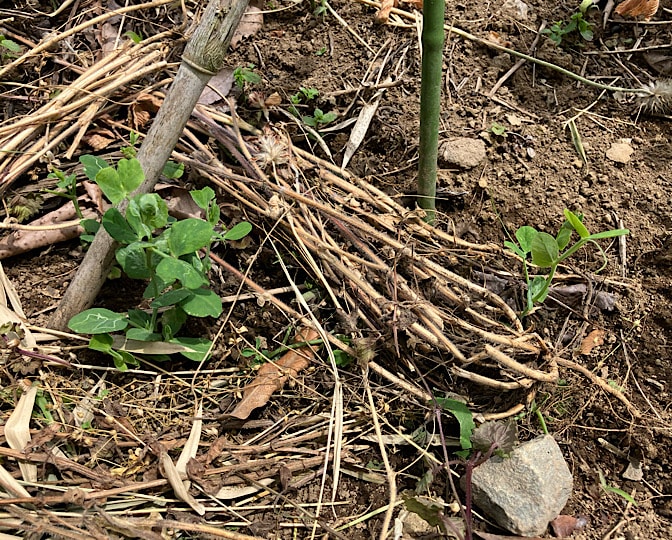 改めて写真を見ると、蒔いたすぐ横に小ちゃい(というか瀕死な感じの)スナップエンドウあるね!!!(◎_◎;)