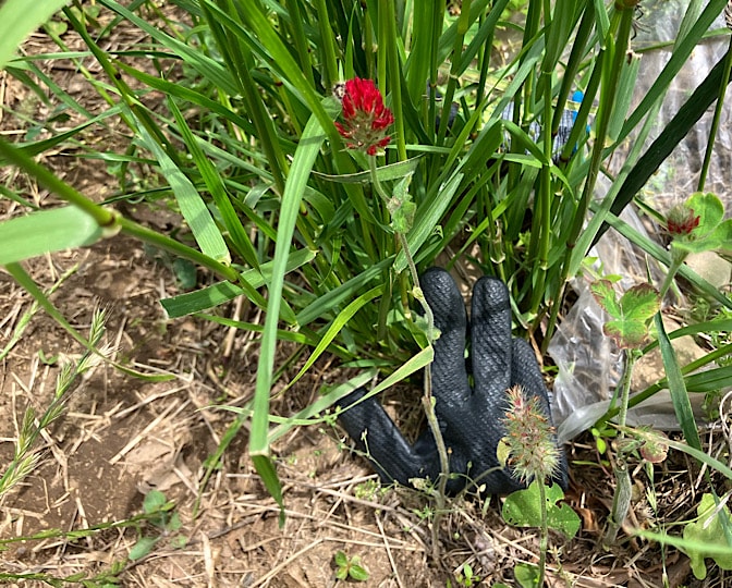あ、前回、支柱に干したまま忘れて行った手袋、ありました。