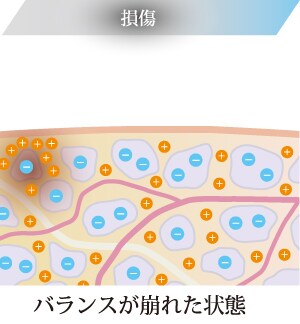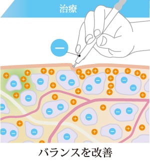 生体は細胞や組織が損傷を受けると、その損傷部位は電気的にマイナスに傾き、プラスに荷電された修復物質(アミノ酸、ダンパク質など)を取り入れる働きを強めます。