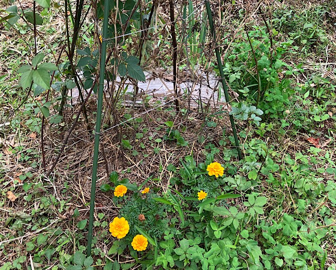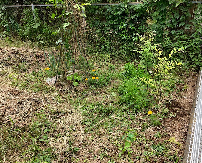 日陰を作るべく、支柱にヤブガラシ(多分)をわざわざ絡ませてますが、さすがに蔓延り過ぎなので整理しました。