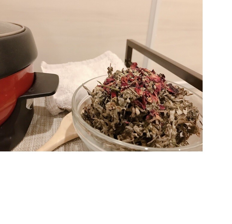 ヨモギ蒸し45分 + クレイ足湯 + 無農薬酵素ドリンク