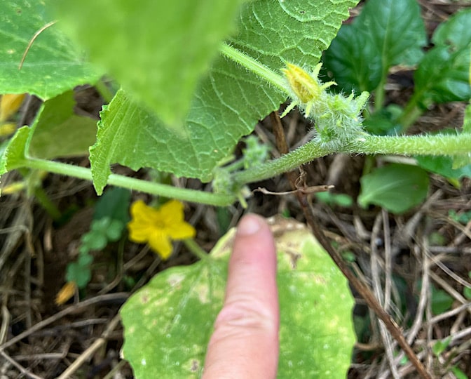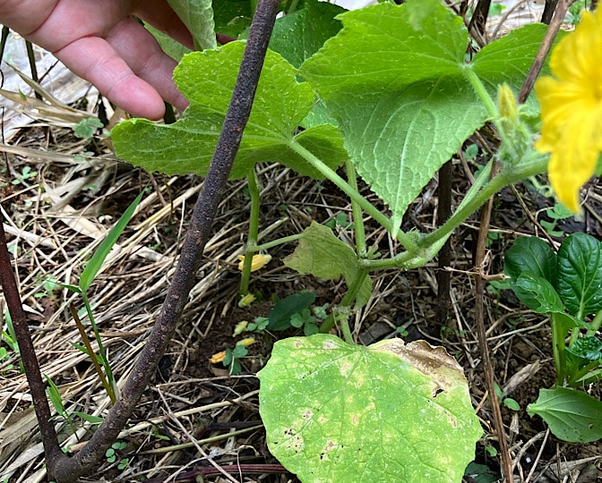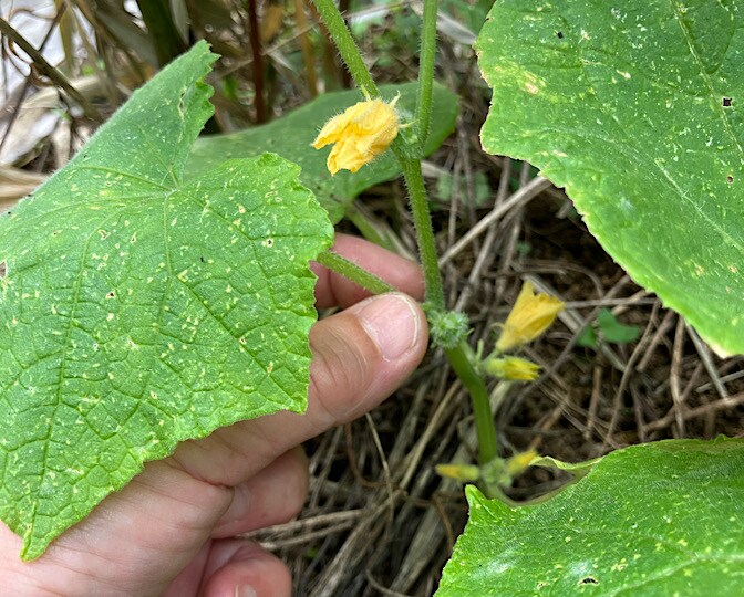 プランターで育ててるキュウリが、花を咲かせちゃったので慌ててやりました。