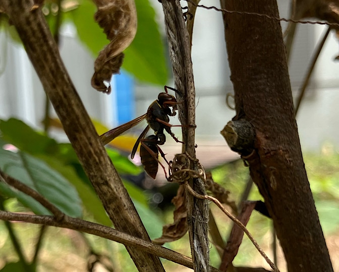 いつだったか、わたしが巣をポイしちゃったアシナガバチ母さんかな!?