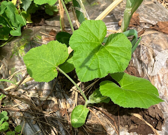 カボチャ、キュウリのウリ科兄弟、50cmくらい離してあるけど、どうなるかなーーー!?