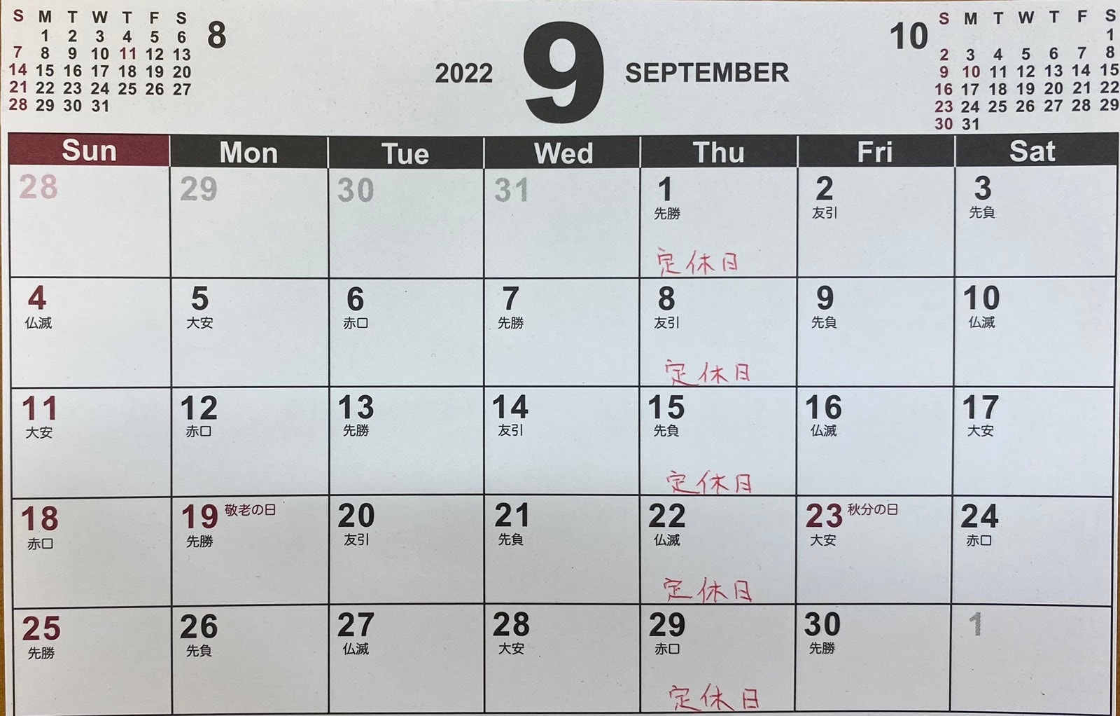 9月のカレンダーです。