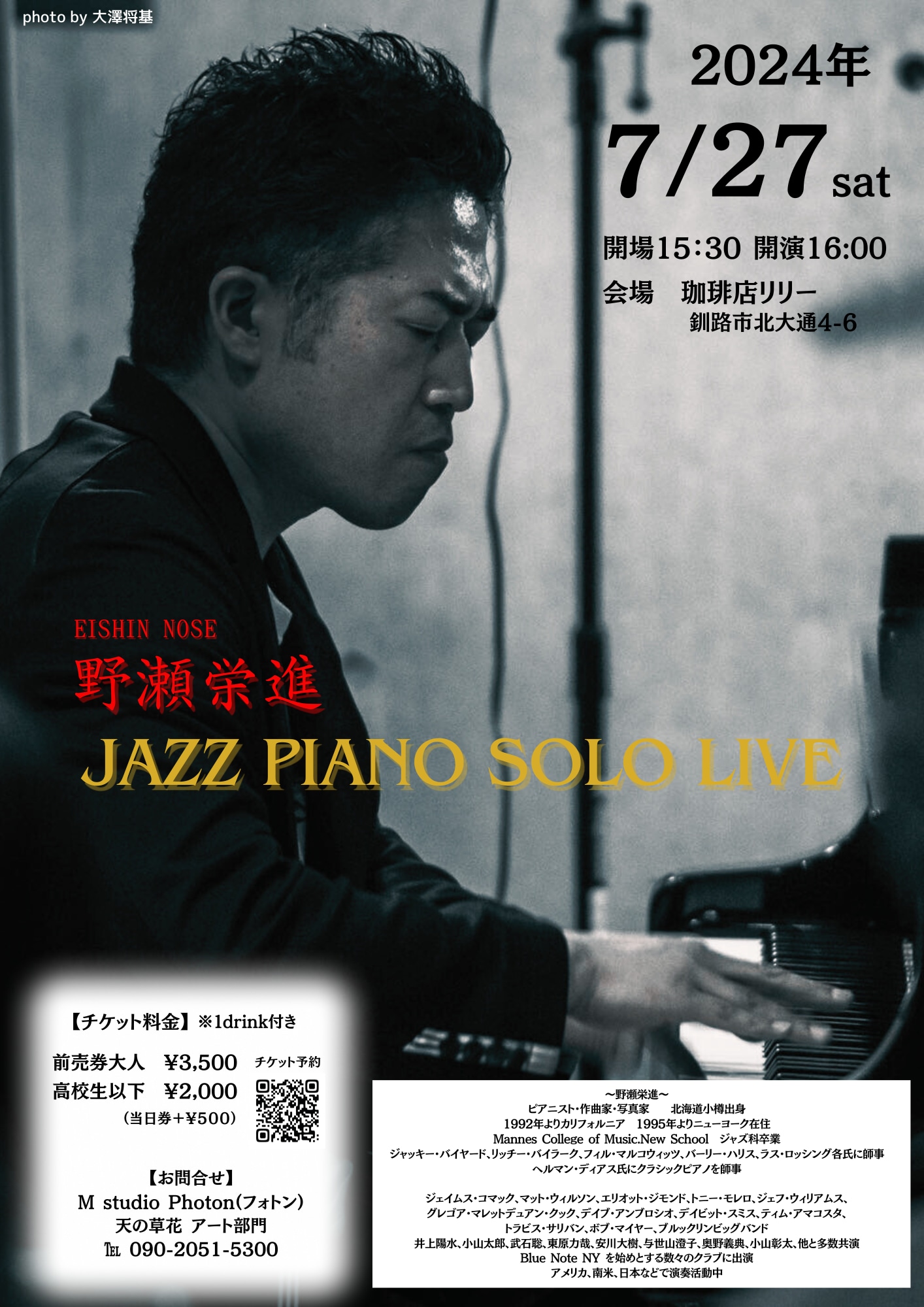 【野瀬栄進】ジャズピアノソロライブ@釧路