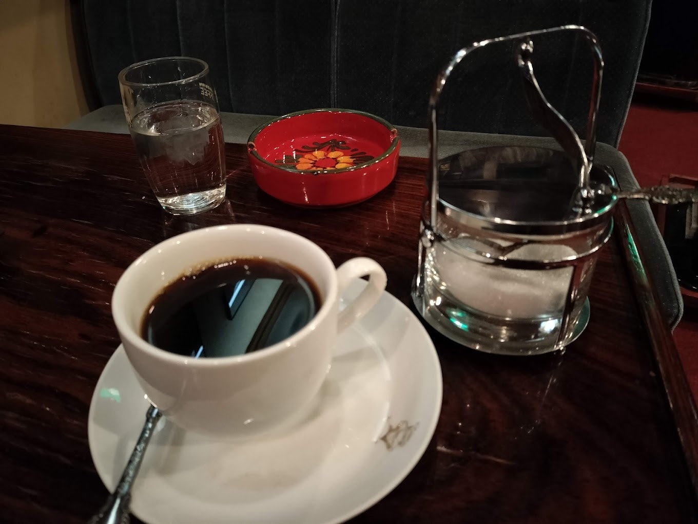 名物ママの淹れるキャラバンコーヒーはホッとする味わい。