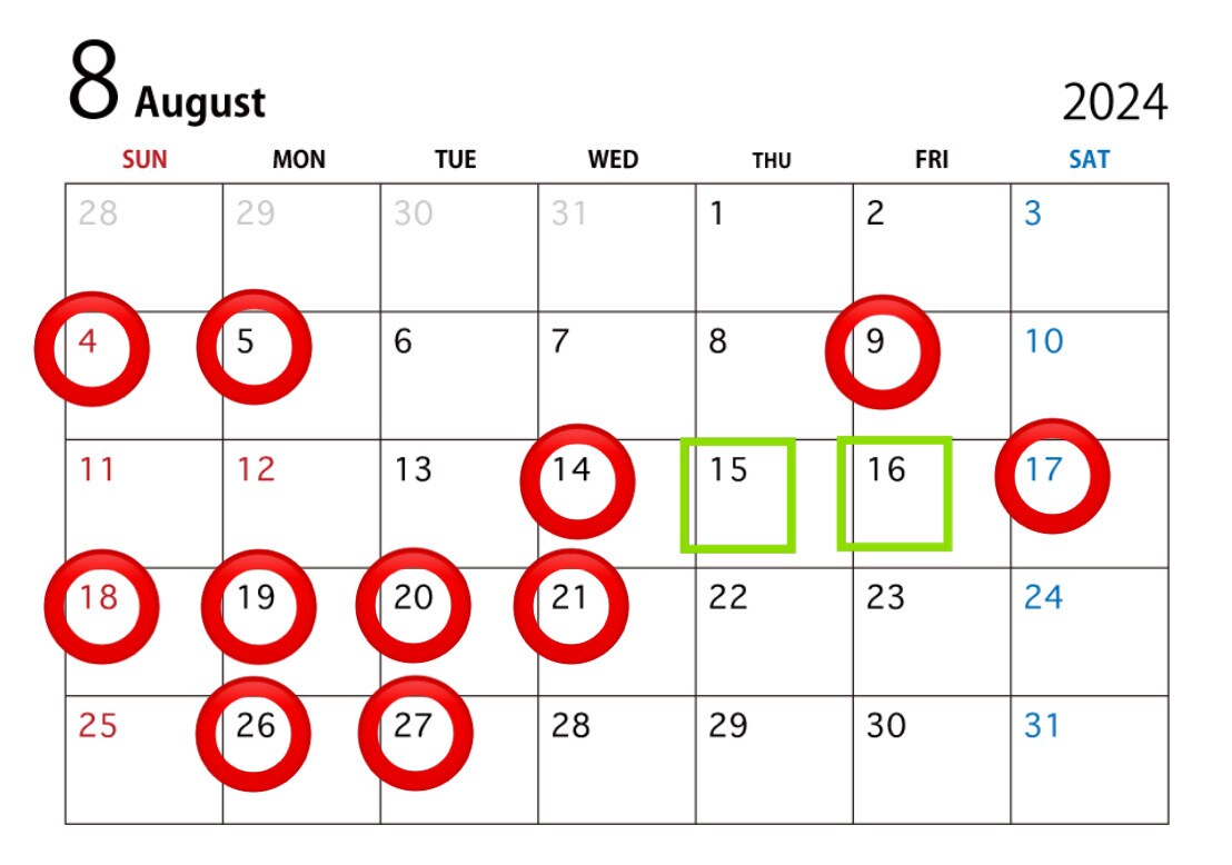 8月のお休みになります!
