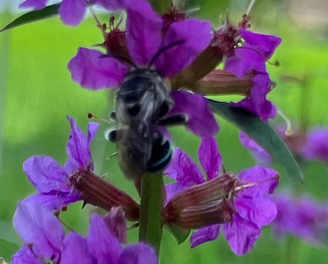 ミソハギに青いシマシマのハナバチさんが来てました!!