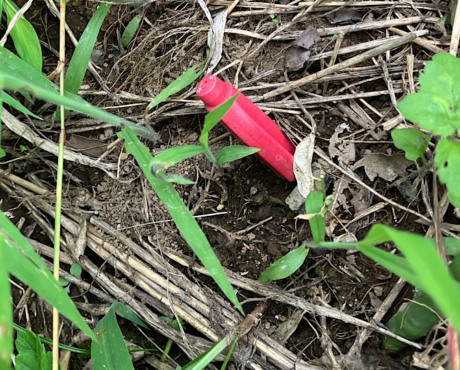 ちなみに、なんで赤ペンが刺さってるのかというと、赤色は虫を避けると聞いたので、赤いの刺してみましたー!