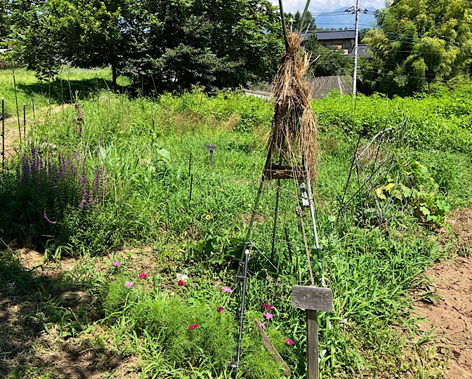 そして、蜂っちんのお宿の雨よけになるように、麦の向きを変えて引っ掛け直します!!
