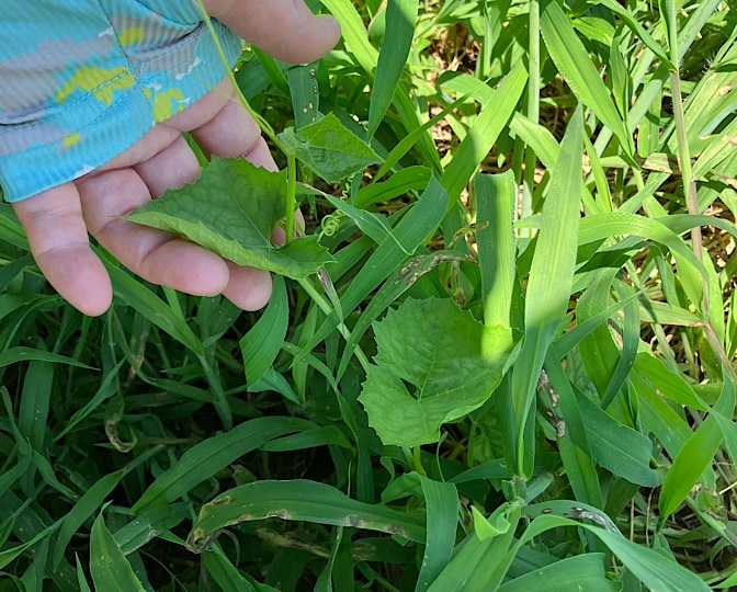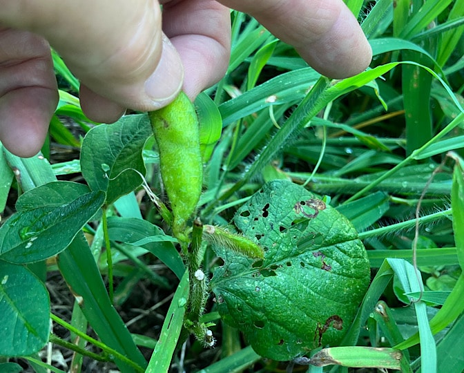 エダマメは、周りの草より低いところで実っているものもありました!!
