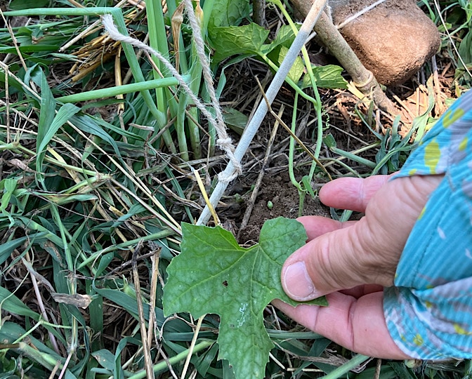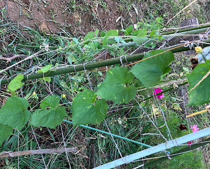 カボチャ畝のネットが、ボロボロになってたので(動物の仕業か???)補修しました。