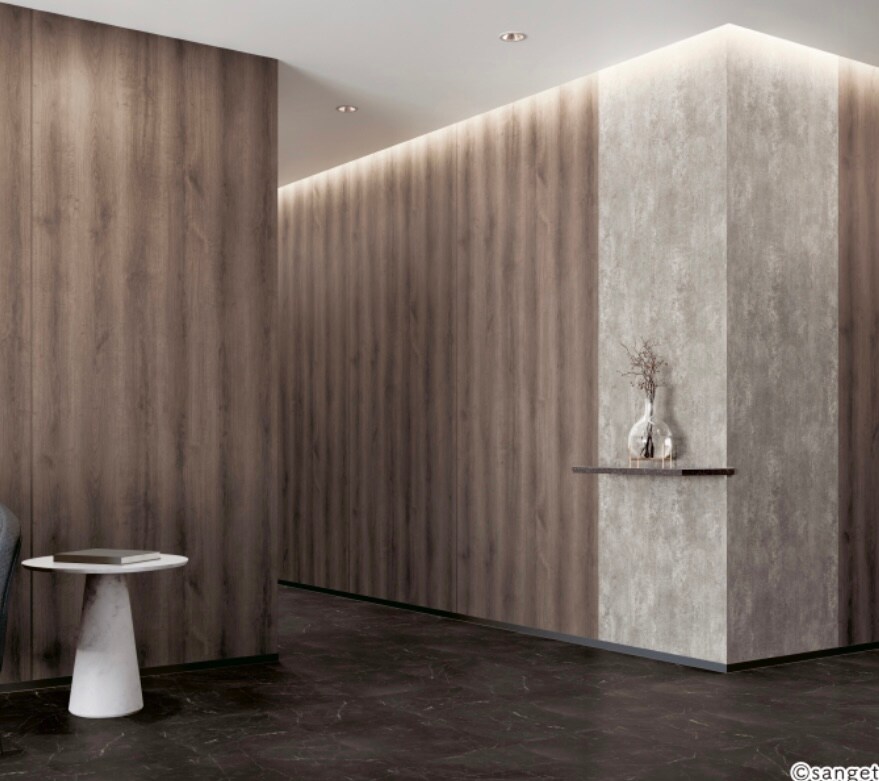 木目調、大理石風、ステンレス風などたくさんある種類の中から、お客様のお好みの『コンクリート調』で貼り上げを致しました。
