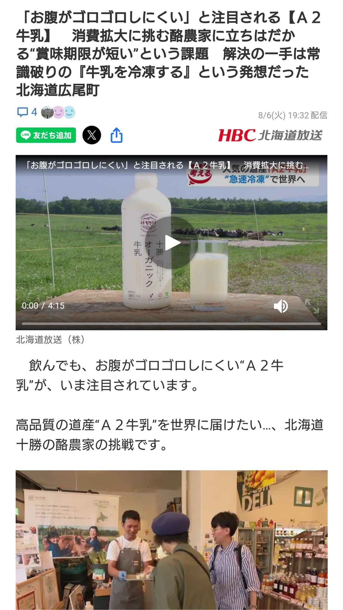 HBCテレビで冷凍オーガニック牛乳が放送されました!!