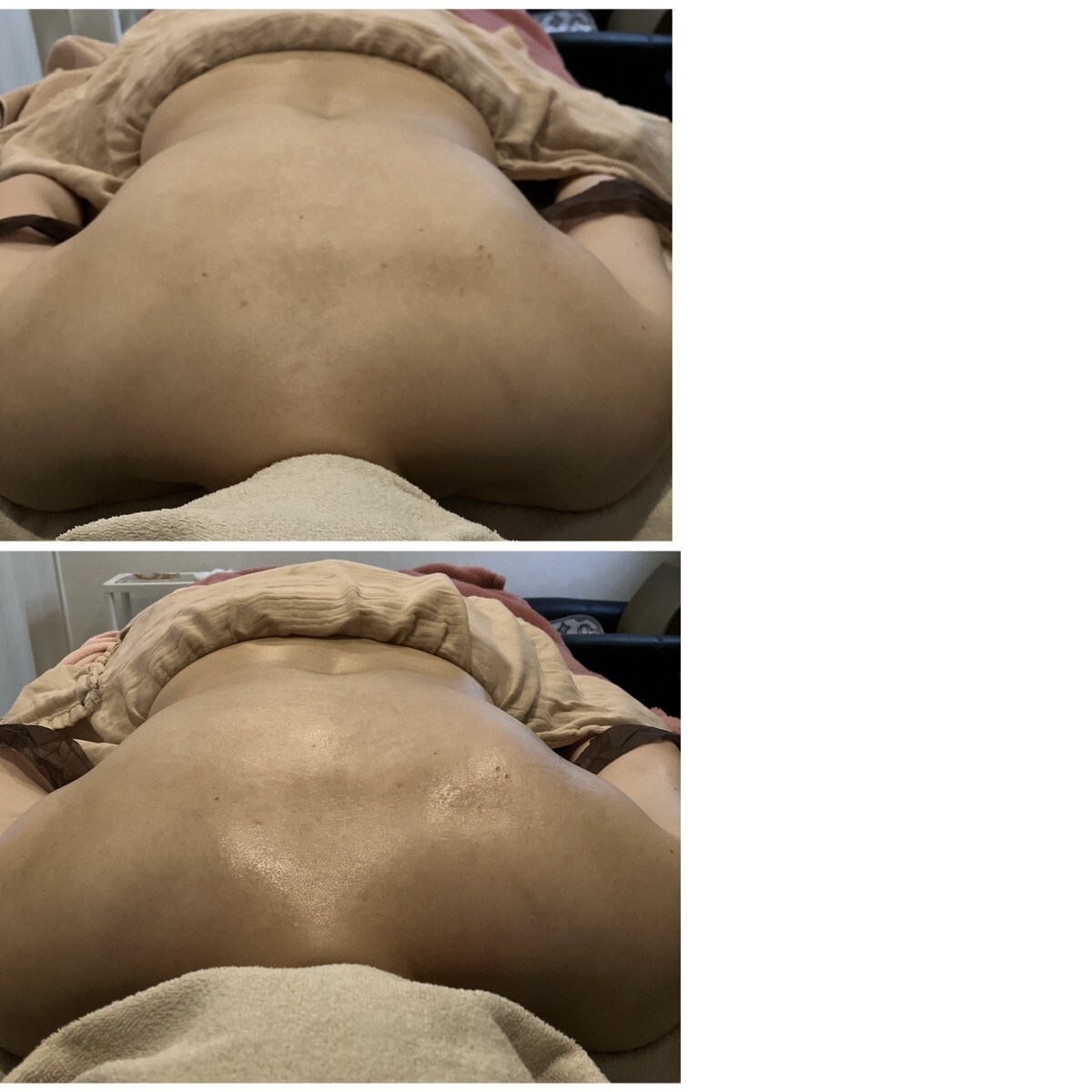 筋膜リリース×アロマボディでは背中は30分もかけてしっかりと流します。