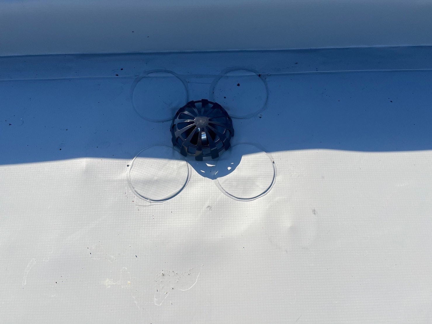 密着工法は塩ビシートをボンドで貼り密着させますが、機械固定工法は下地と塩ビシートの間に緩衝材とディスク盤を設置することで隙間を作りますので、密着工法に比べて下地の影響を受けにくくなります。