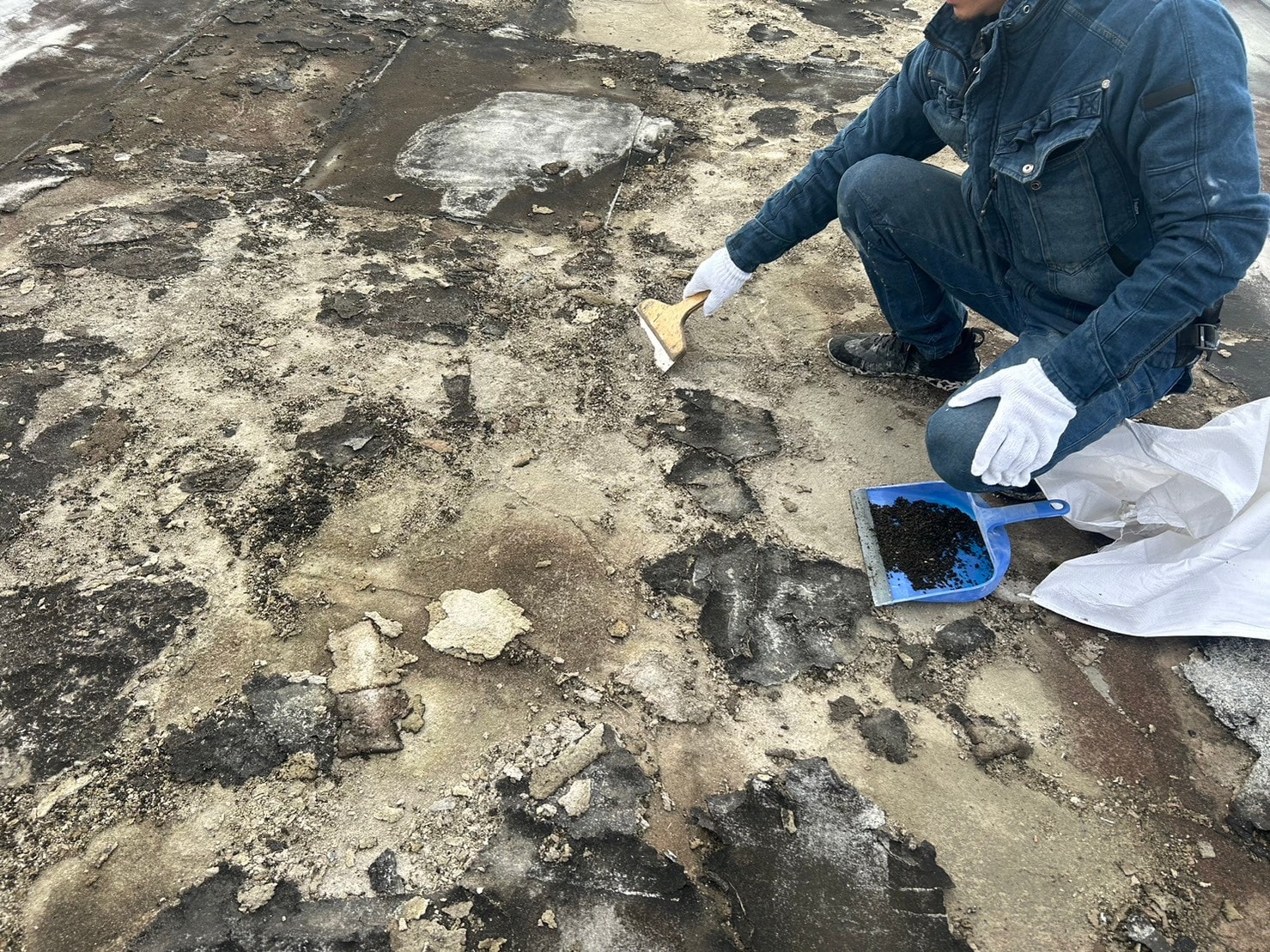 既存はゴムシート防水でしたが、それは軽く20年以上前に施工されたもので、雨漏りする度に所々で修復された形跡がありました!