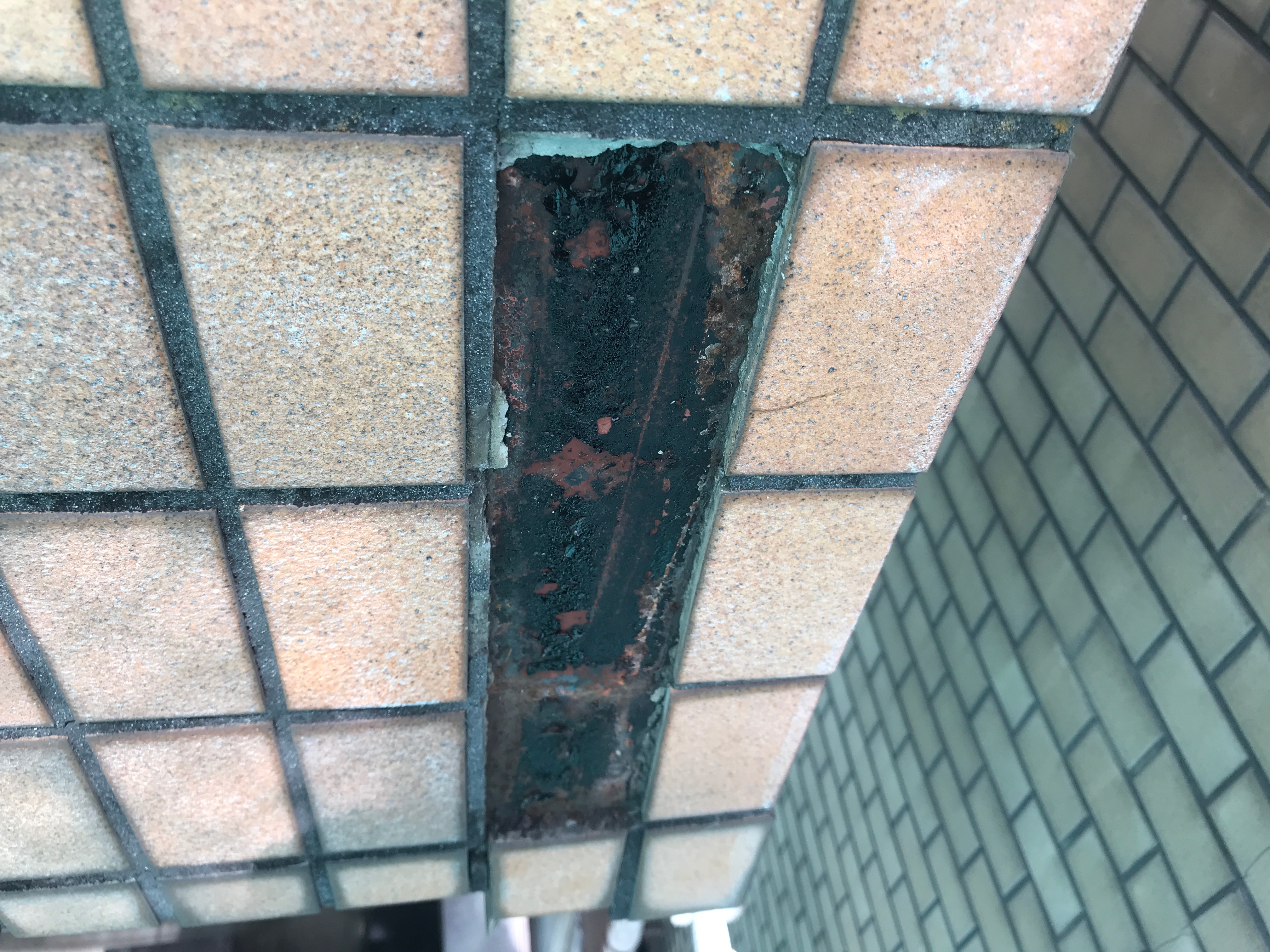このようにスチールの腐食でタイルが浮いている個所が結構ありました。