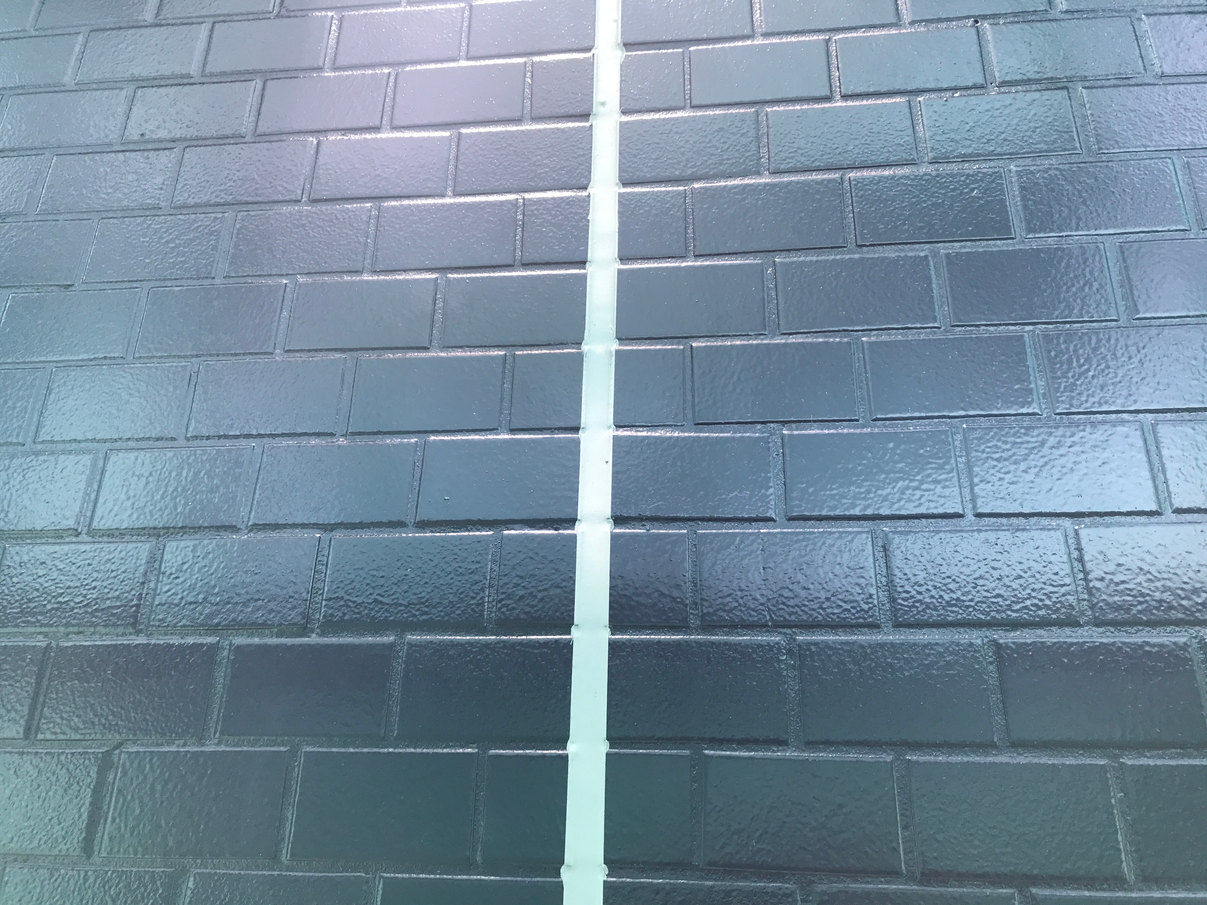 タイル面は仕上げの塗料は密着しませんので、下塗りにエポマリンGX(関西ペイント)を塗布して強い素地を形成します。