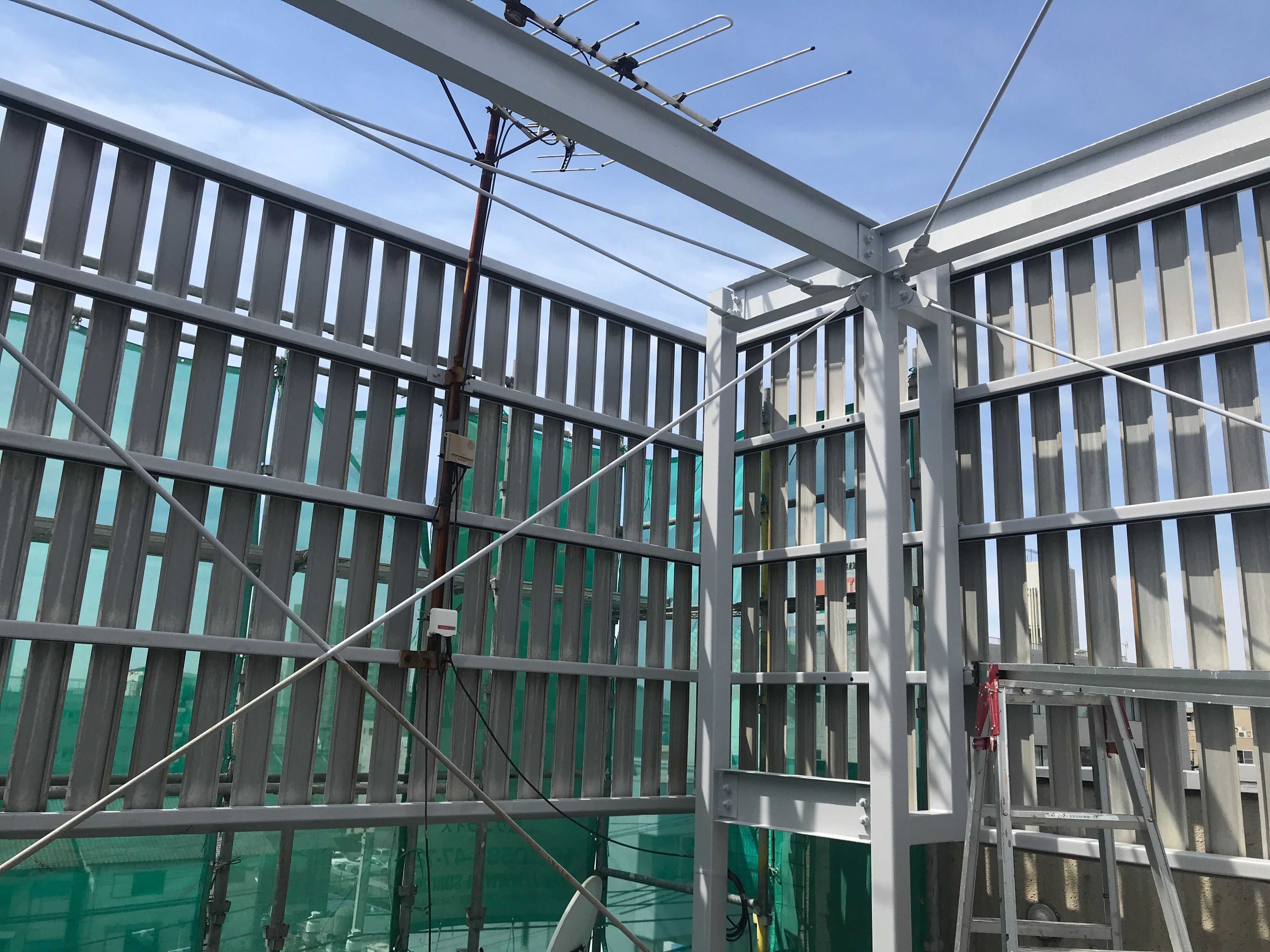 屋上のルーバも塗装させていただきました。